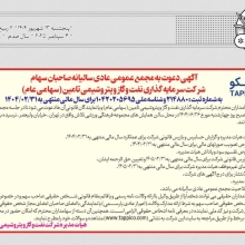 آگهی دعوت به مجمع عمومی عادی سالیانه صاحبان سهام شرکت سرمایه گذاری نفت و گاز و پتروشیمی تأمین (سهامی عام)