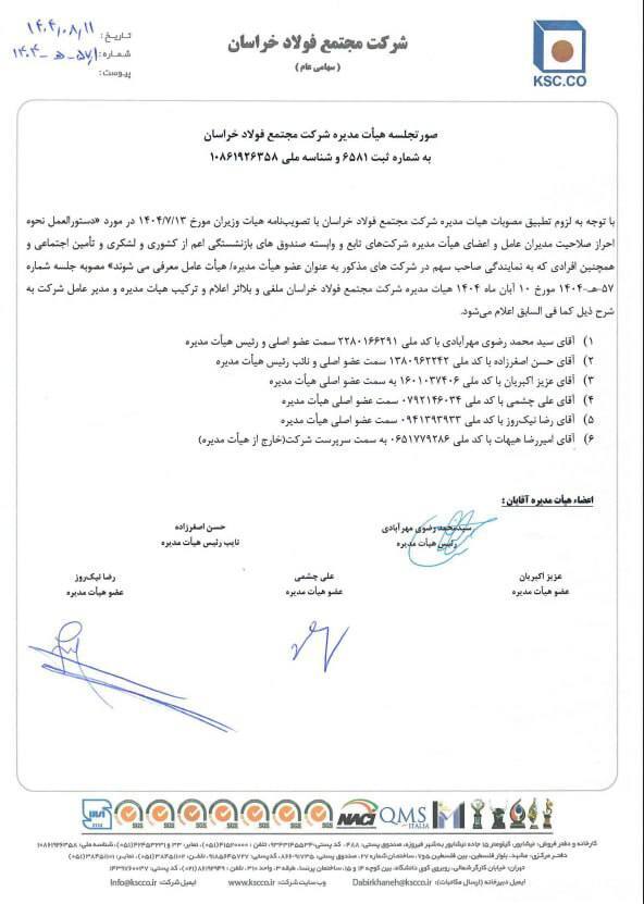 به گزارش خبر صنعتی؛ پس از حاشیههای انتصاب امیر آذری در فولاد خراسان و شائبه تعارض منافع وی، بنابر جدیدترین اطلاعیه صادرشده، مصوبه قبلی هیات مدیره باطل شد و امیررضا هیهات دوباره به عنوان سرپرست فولاد خراسان انتخاب شد.