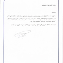 با توجه به خدمات ارزشمند سوابق اجرایی و تجربیات ،جنابعالی و با عنایت به توانمندی های فنی شما، بدینوسیله جنابعالی با حفظ سمت رئیس هیات مدیره شرکت ملی حفاری ایران به عنوان مشاور اینجانب در امور فنی” منصوب می گردید.”