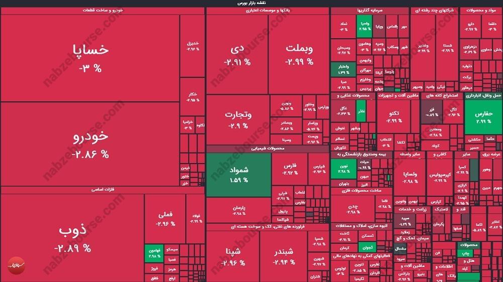 شاخص آزاد شناور: ۵ میلیون و ۱۶۱ هزار و ۲۵۸ واحد | کاهش ۱۴۳۶۶۸ واحدی | معادل منفی ۲.۷۱ درصد