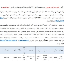 آگهی تجدید مزایده عمومی مجموع مسکونی ۲۲۴ واحدی شرکت پتروشیمی غدیر (مرحله دوم)